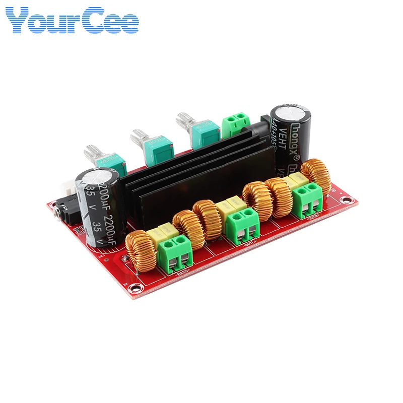 This power amplifier module samples two neutral TPA3116D2 digital power amplifier chips, one of which is used as left and right channel power amplifier, and the other is bridged with NE5532 in front to drive heavy bass. It has the characteristics of small size, high efficiency, high power, and low heat generation. NE5532 is a high-performance low-noise dual operational amplifier (dual operational amplifier) integrated circuit. It is similar to many standard op amps, but it has better noise performance, excellent output drive capability, high small signal bandwidth, and large power supply voltage range. Therefore, it is very suitable for high-quality and professional audio equipment, instruments, control circuits and telephone channel amplifiers