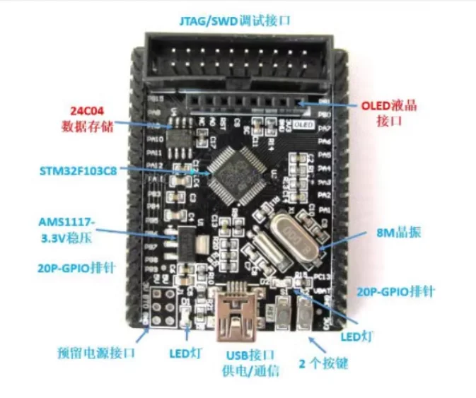 5, interfaz estándar 20P-JTAG/SWD, aplicable al tipo de necesidad 6, memoria de parámetros de datos 24C04 integrada, fácil de aplicar el desarrollo del almacenamiento de parámetros de datos 7, admite pantalla OLED, proporciona rutinas de controladores, plug and play.Interfaz SWD, aplicable al tipo de necesidad 6, memoria de parámetros de datos 24C04 integrada, fácil de aplicar el desarrollo del almacenamiento de parámetros de datos 7, soporte para la pantalla OLED de la tienda, proporciona rutinas de controladores, plug-and-play 8, en -botón de reinicio integrado y teclas de operación del usuario, desarrollo de funciones conveniente