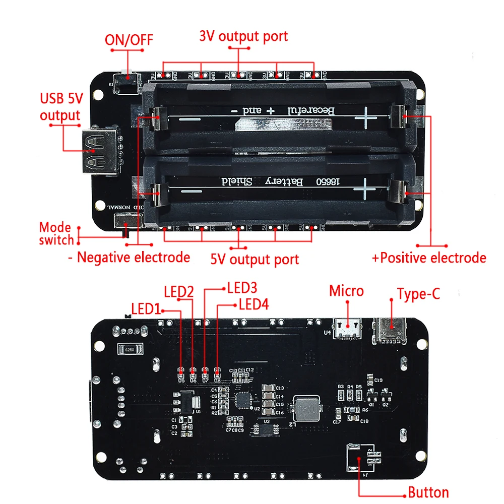 Comprar Módulo de placa de expansión de energía móvil V8, protector de batería de litio 18650 de dos voltaje, 5V/3A, 3V/1A, Micro USB para Arduino ESP32 ESP8266
