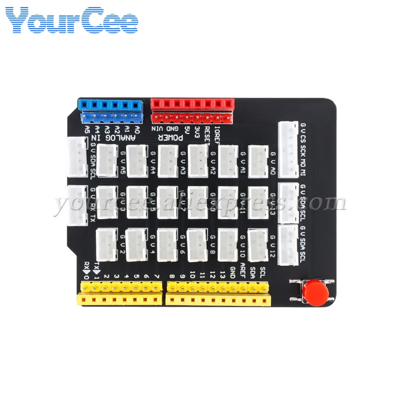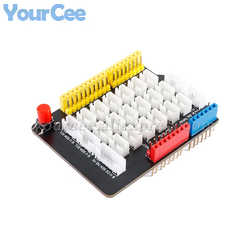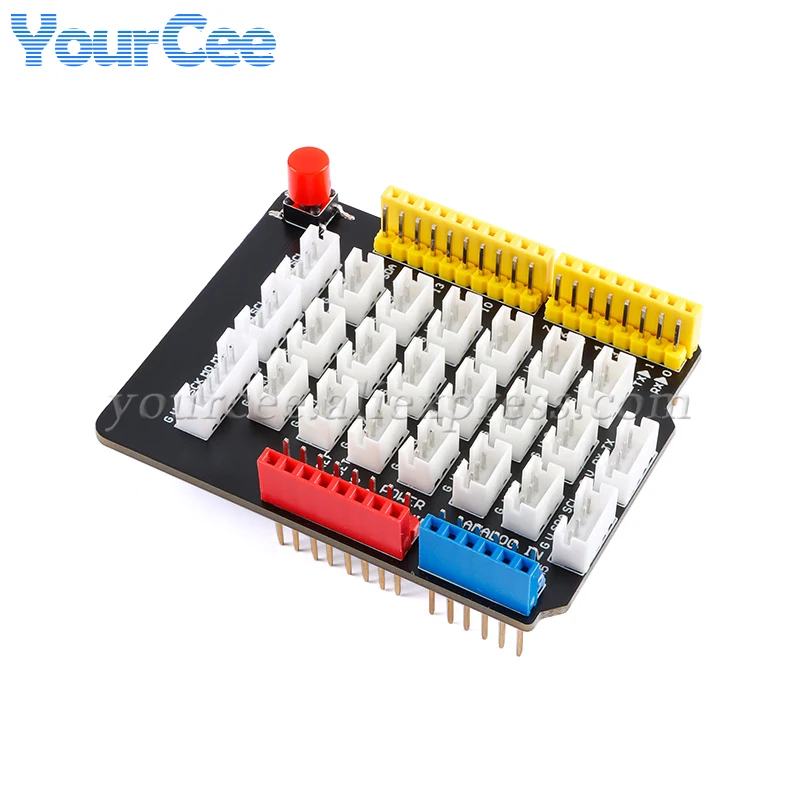Comprar Módulo de placa de expansión de placa adaptadora de escudo de Sensor para Arduino R3 con botón de Reinicio IIC I2C UART PH2.0 puerto electrónico DIY