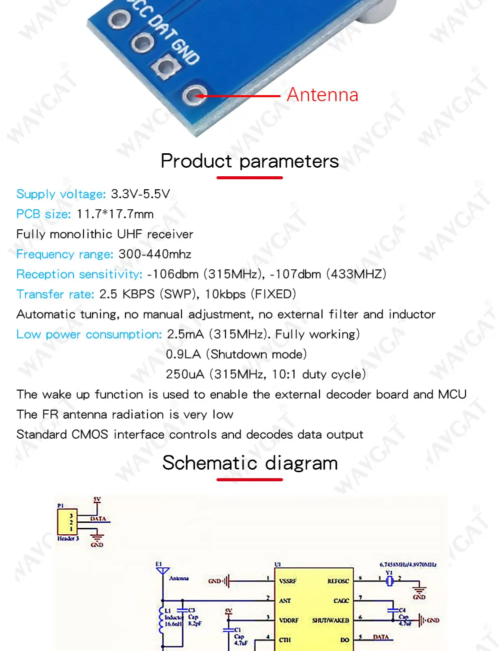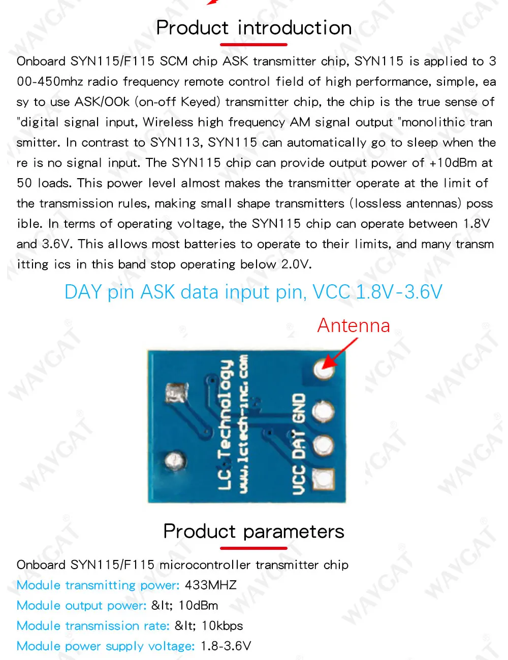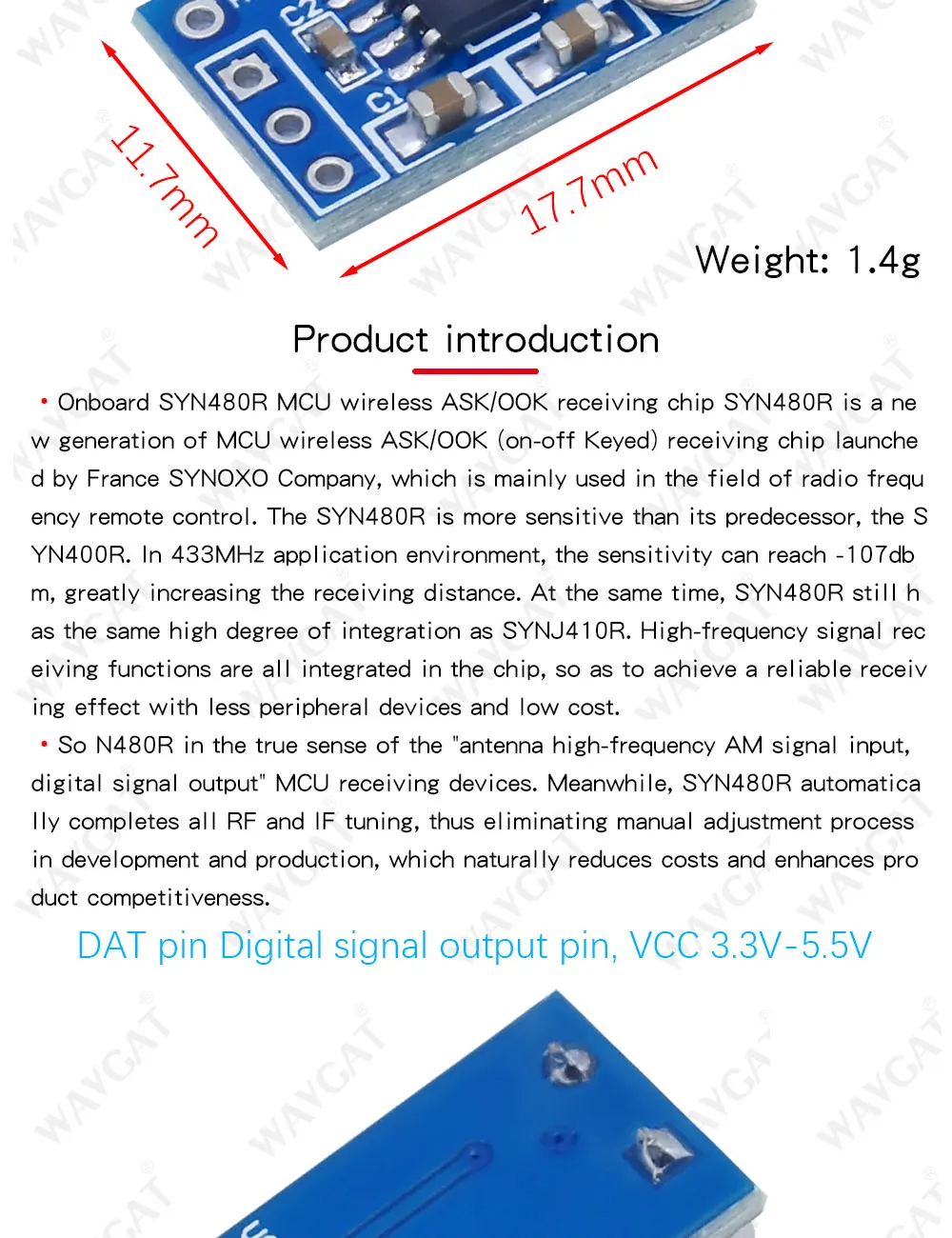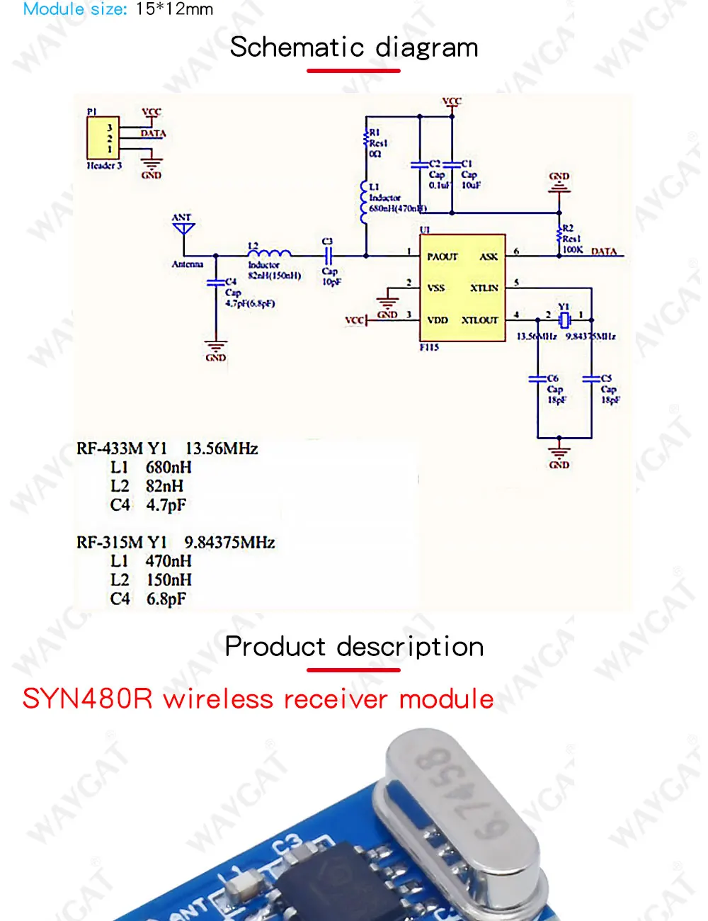 Comprar Módulo de placa receptora, transmisor sem fio syn115 syn480r ask/ook chip pcb para arduino, 1 conjunto, 2 unidades, 433mhz