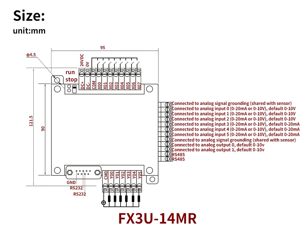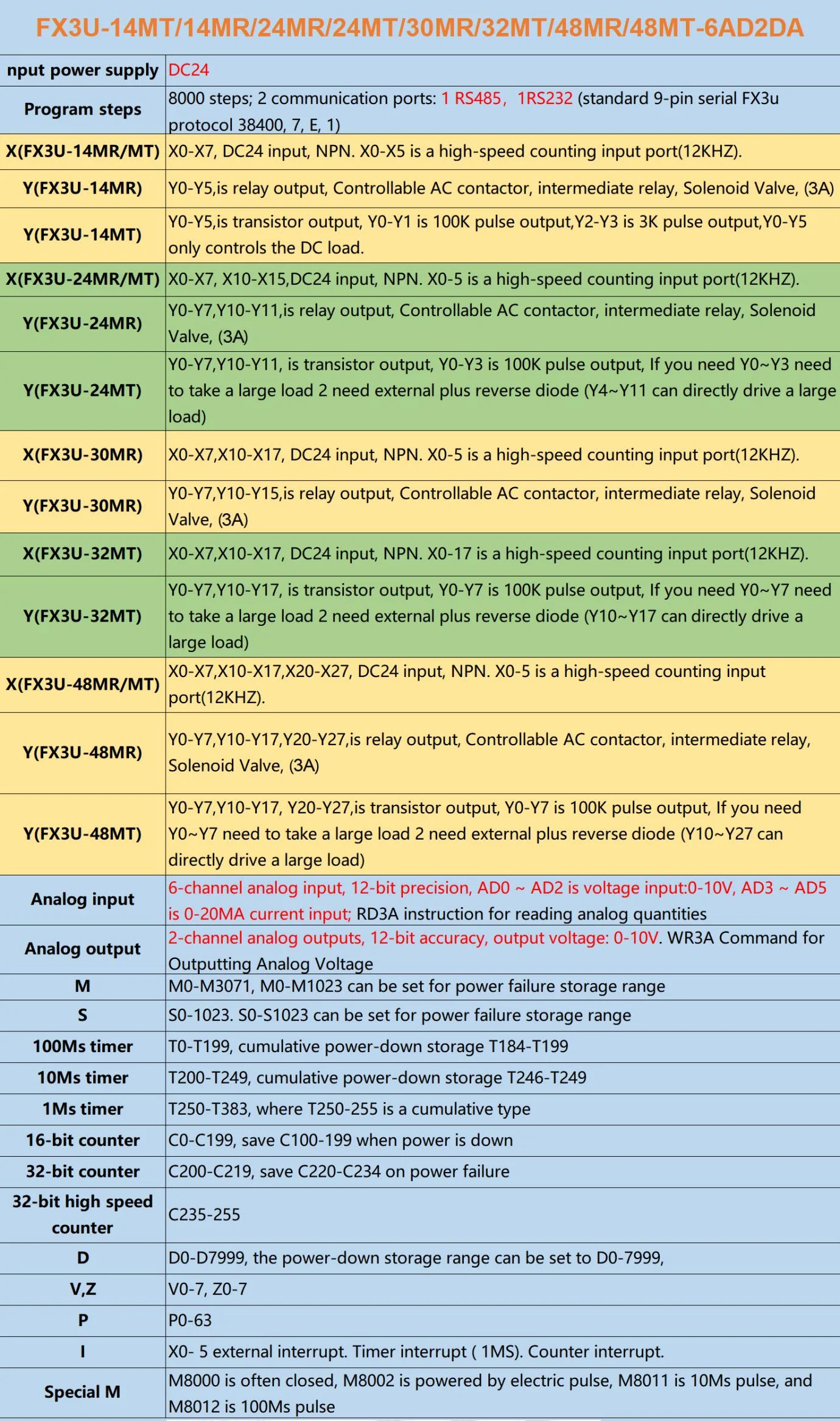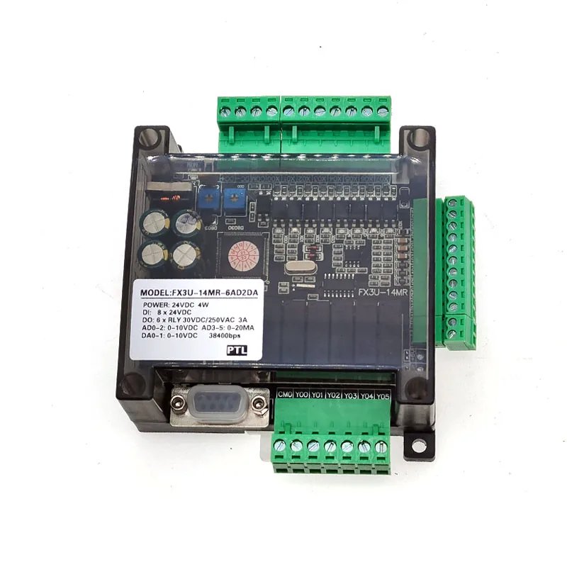 Comprar Módulo PLC FX3U-14MR 24VDC 8 entradas 6 salidas con RS232 RS485 Modbus para automatización industrial Transistor de relé analógico 6AD 2DA