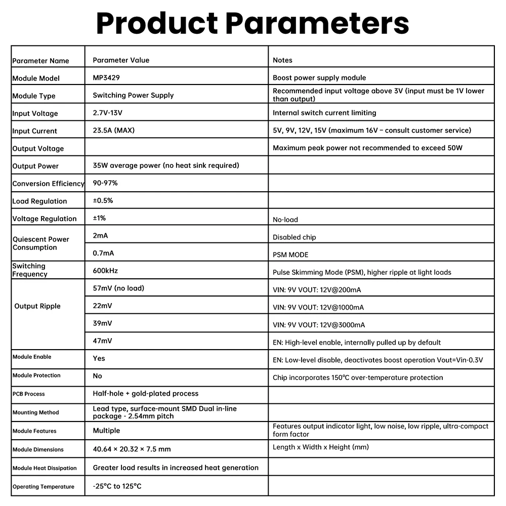 Comprar Módulo de potencia de refuerzo MP3429 DC-DC 3-14V a 5V/9V/12V/15V alta eficiencia baja ondulación 21A corriente de entrada de pico para batería de litio