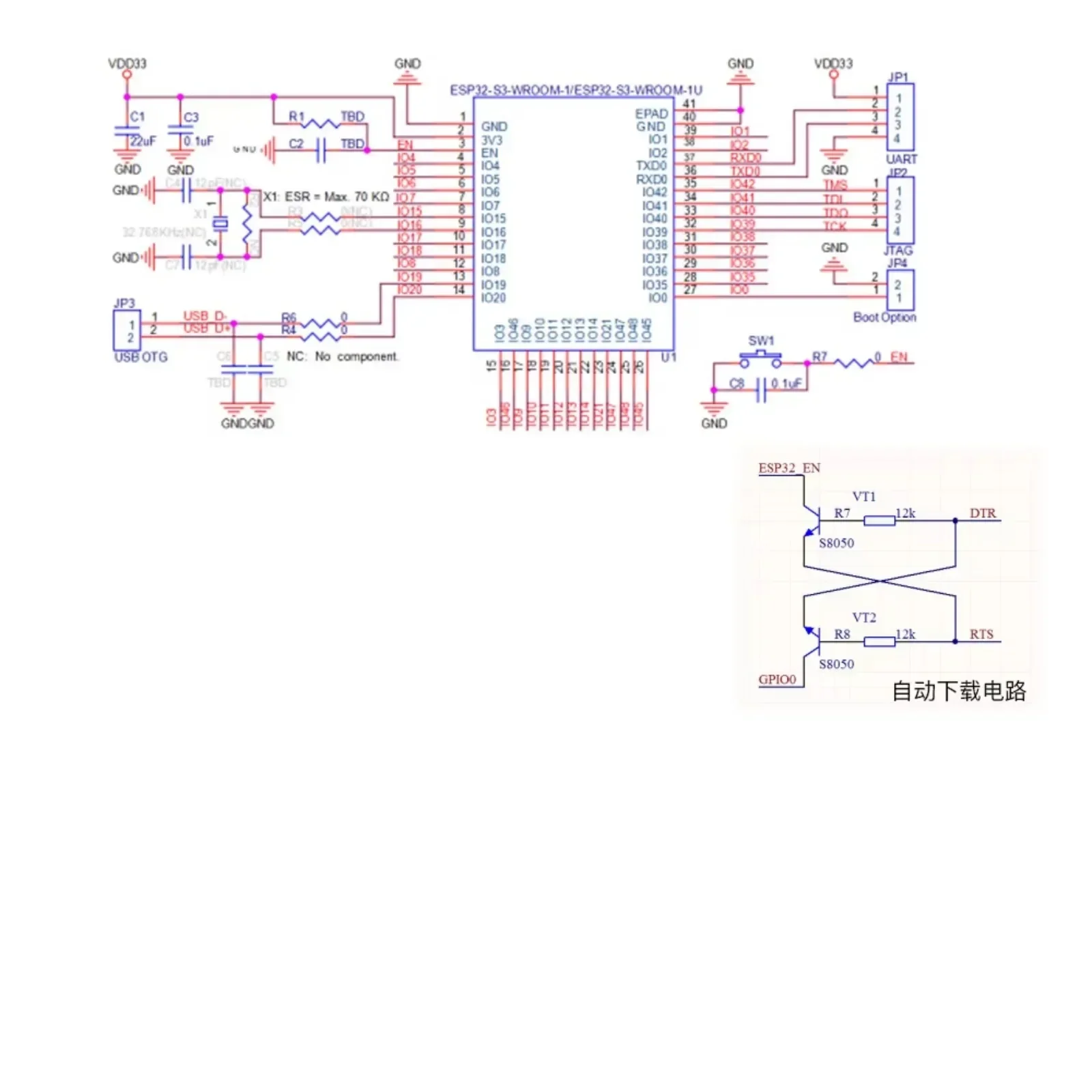 (5) Conecte los pines EN y GPIO del módulo al DTR y RTS del chip del puerto serie para realizar el software automáticamente