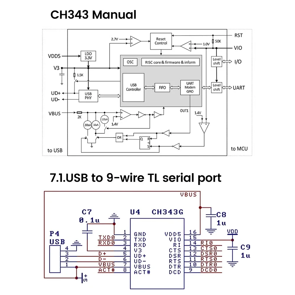 CH343 es un chip de conversión de bus USB, USB a puerto serie asíncrono de alta velocidad y admite identificación automática