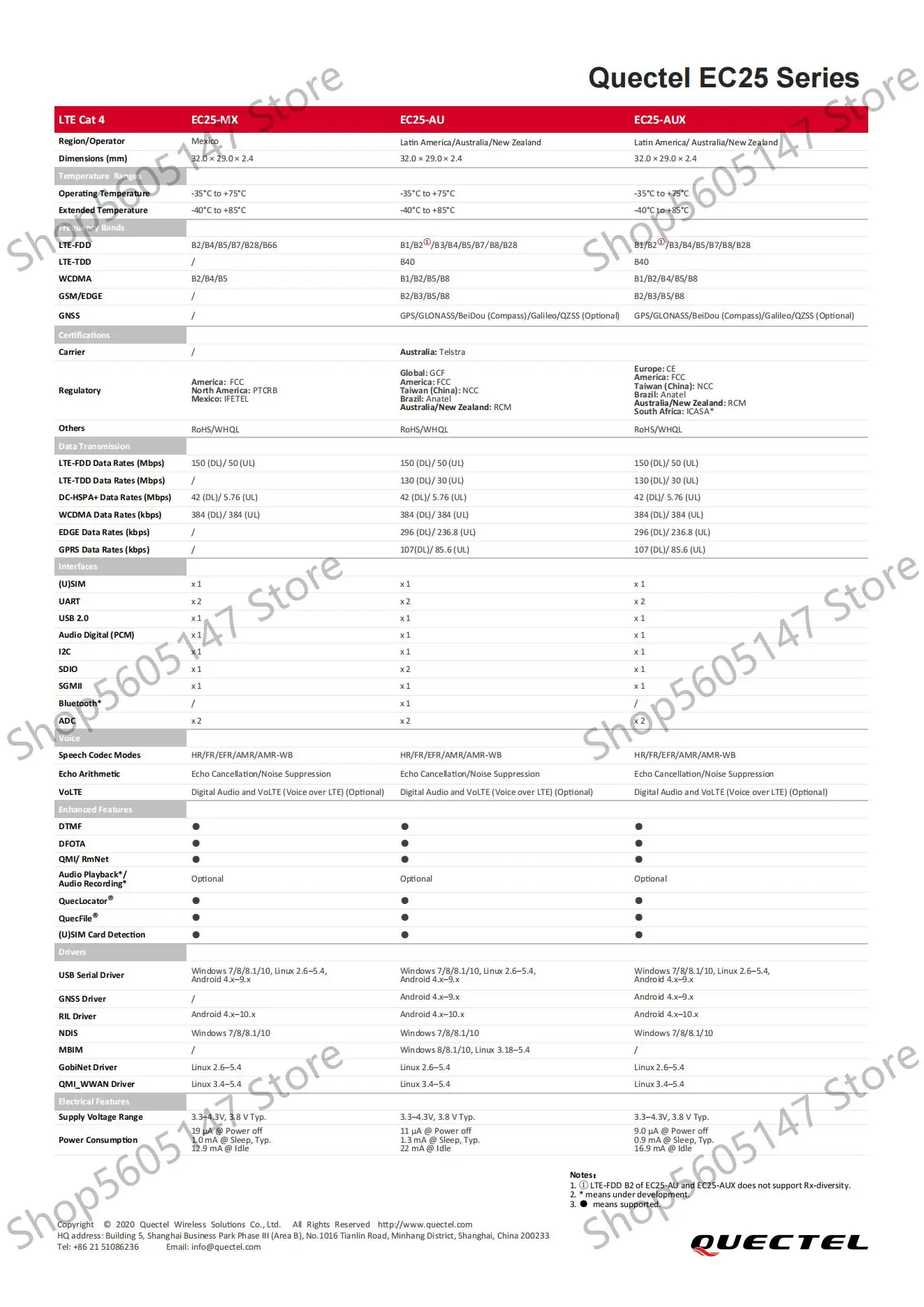 Comprar Módulo Quectel EC25 LTE Cat4 EG25-G EC25-A EC25-AF EC25-AU EC25-E EC25-EU EC25-J EC25-MX EC25-V EC25-EUX EC25-AUX EC25-AFX Módem