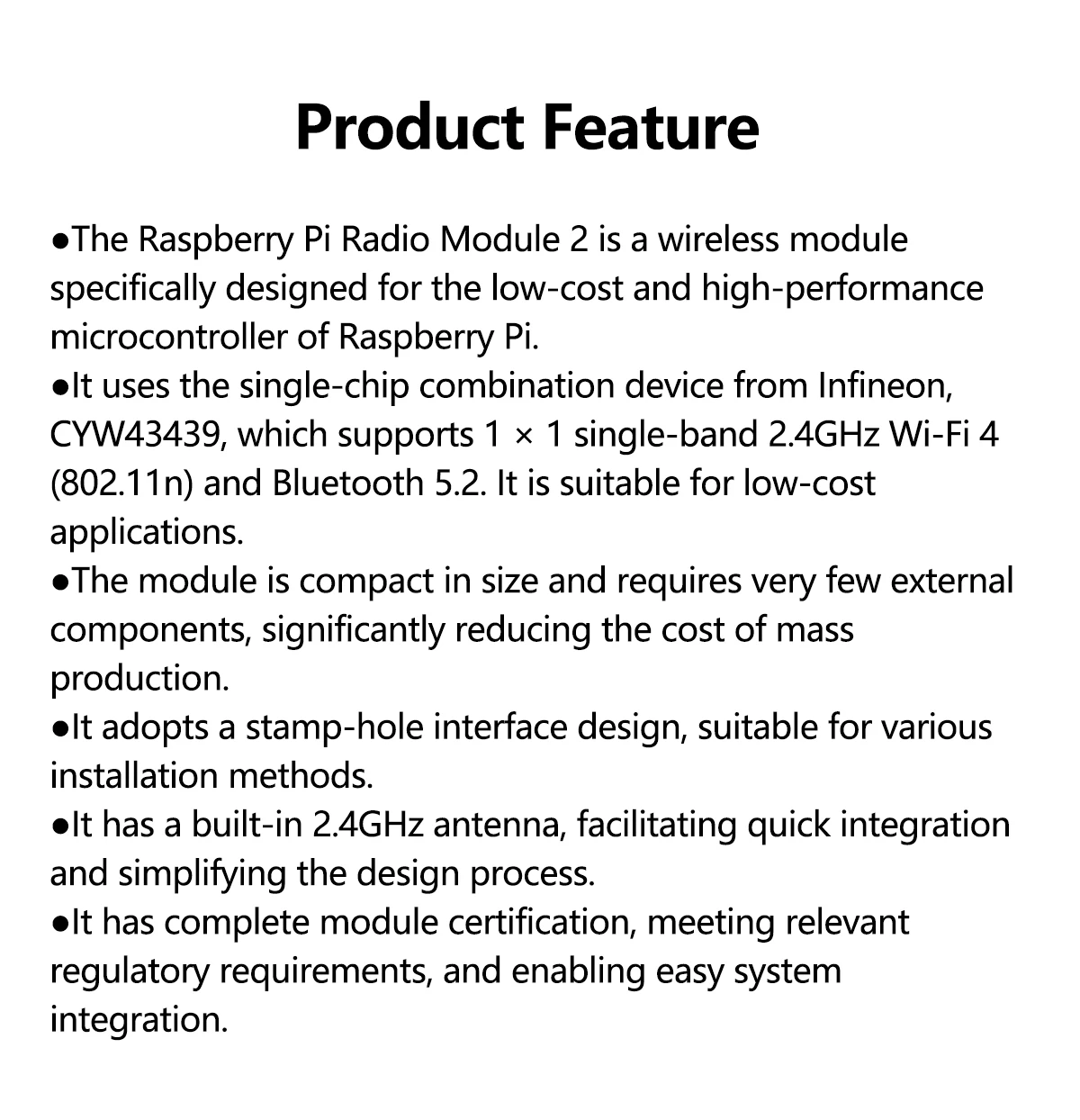 Módulo de radio Raspberry Pi Original 2 Módulo inalámbrico compatible con 1 × 1 Wi-Fi de banda única de 2,4 GHz 4 802.11n y Bluetooth 5,2