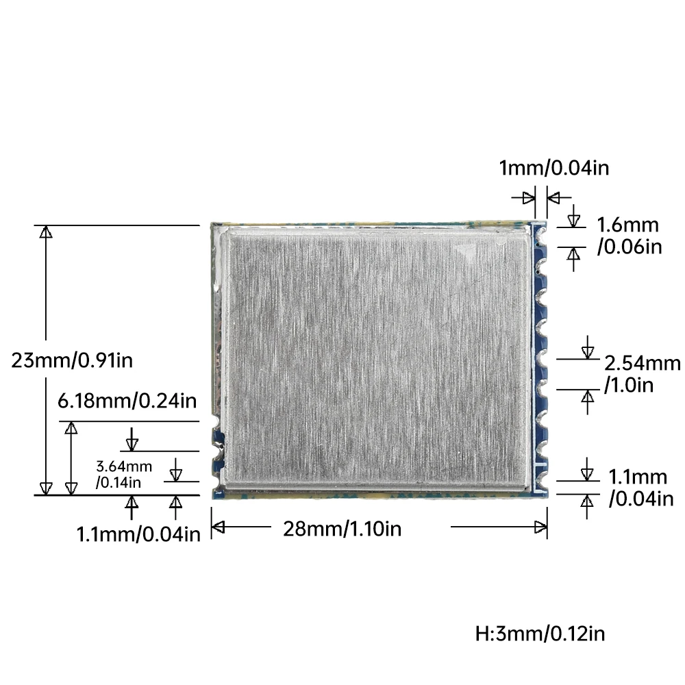2.Paquete compacto de montaje en superficie (28 × 23 × 3 mm) para una fácil integración en varios dispositivos.