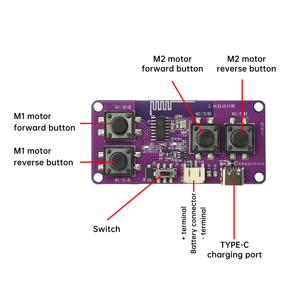 2.Primero encienda el interruptor de la placa del receptor, luego encienda el interruptor de la placa del control remoto dentro de los 20 segundos (si ambas placas permanecen encendidas durante demasiado tiempo, entrarán en modo de suspensión y requerirán reinicio).