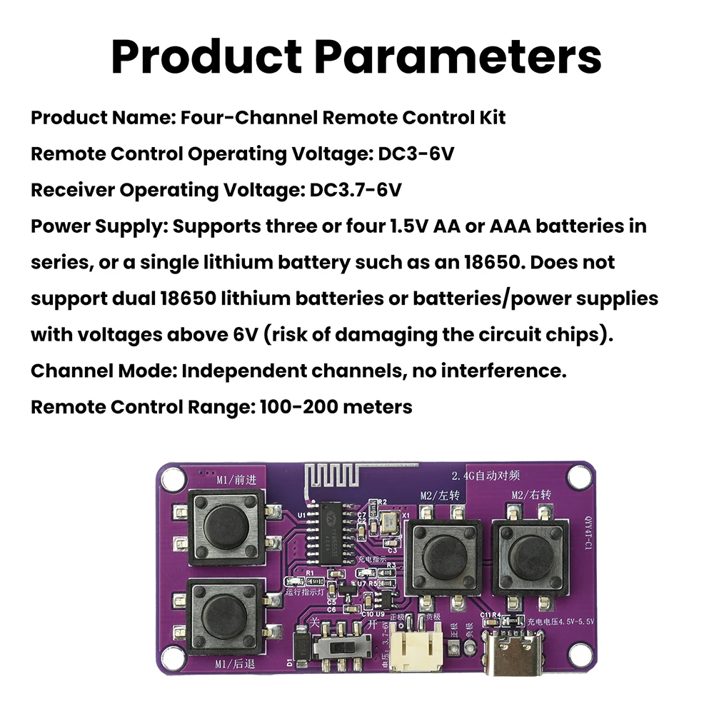 Nombre del producto: receptor de kit de control remoto de 4 canales