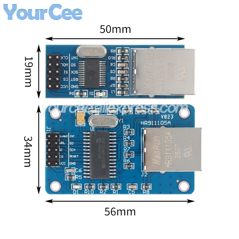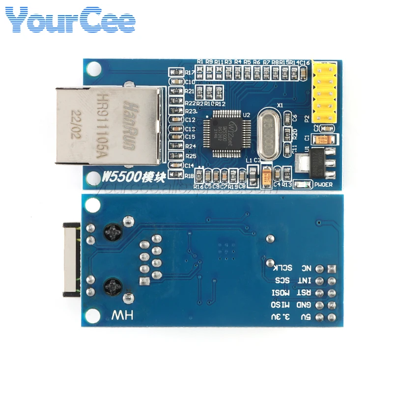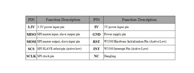 Durante el funcionamiento, los usuarios pueden utilizar el W5500 como RAM periférica de MCU, lo cual es muy simple.La interfaz externa del W5500 es un SPI general de alta velocidad de 80 MHz, que se puede seleccionar para diferentes plataformas para ampliar soluciones Ethernet de alta velocidad.El estado del LED de negociación automática muestra que la interfaz SPI es rápida y estable.El tamaño y los pines son compatibles con el módulo oficial de Wiznet WIZ820io.