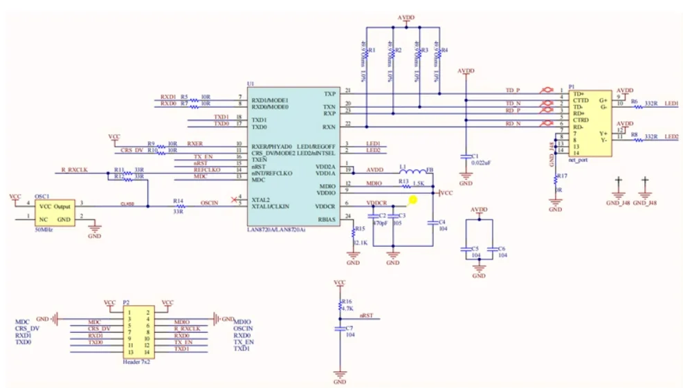 LAN8720 LAN8720 que utiliza un chip transceptor de capa PHY Ethernet de 10/100 Mbps de baja potencia.Admite la comunicación con el controlador de capa Ethernet MAC a través de la interfaz RMI.El LAN8720 puede conectarse y comunicarse con el host de destino de la mejor manera (velocidad y modo dúplex) mediante negociación automática;Admite la función de giro automático HP Auto _MDIX, puede cambiar automáticamente la conexión a conexión directa o conexión cruzada sin cambiar el cable de red.Puede funcionar en modo de bucle atrás; detección de despertar en estado conectado; múltiples modos de bajo consumo; circuito de reinicio de encendido integrado y circuito regulador de voltaje lineal de 1,2 V; dos pines que impulsan LED que indican el estado de funcionamiento.Con registros de funciones especiales que pueden almacenar información del proveedor.