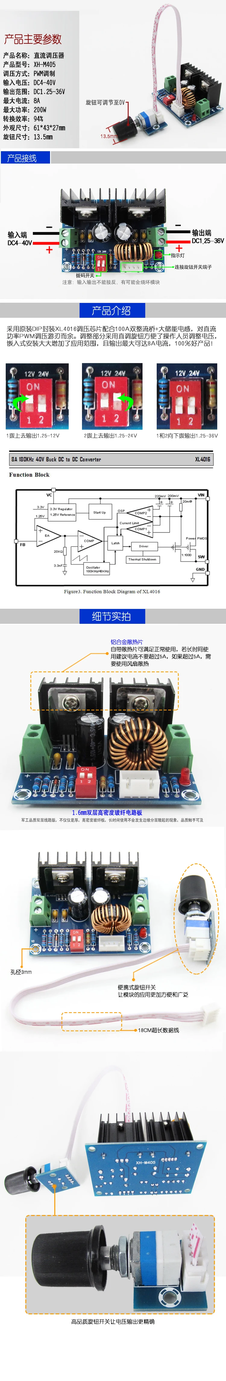 Comprar Módulo regulador de voltaje XH-M405, placa reguladora de voltaje XL4016, potenciómetro externo, módulo reductor, alta potencia 8A