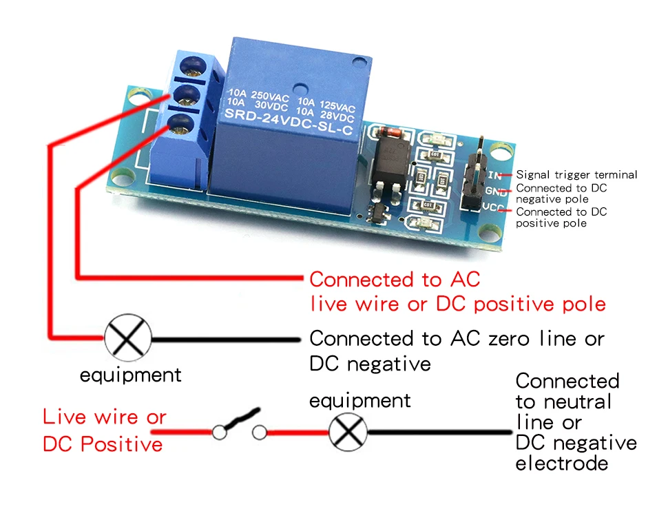 VCC: conectado al polo positivo de la fuente de alimentación (fuente de alimentación según el voltaje del relé)
