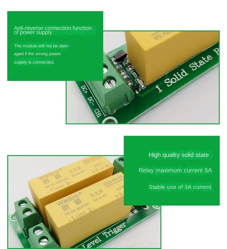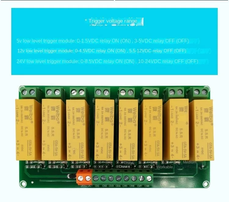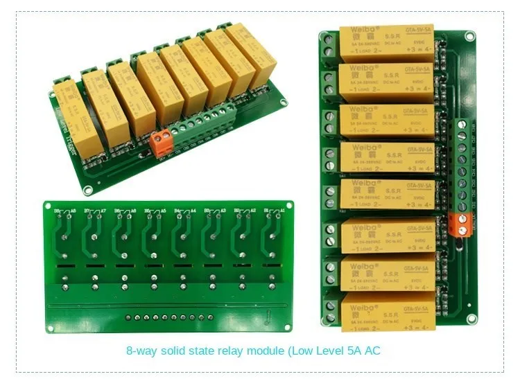 Módulo de relé de estado sólido de 1/2/4/8 Canal 5V/12V/24V entrada salida de CA 5A disparador de bajo nivel para la automatización Arduino PLC