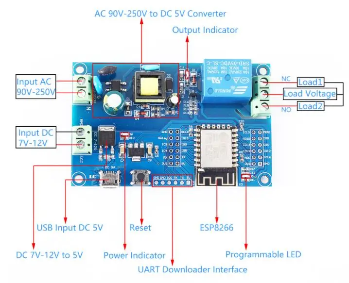 Note: AC90-250V, DC7-12V, DC5V USB can choose one of three power supply modes.