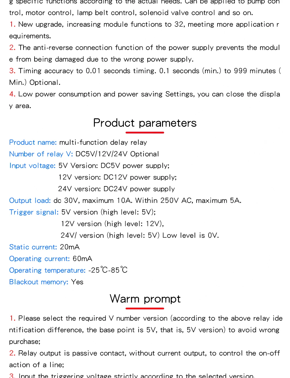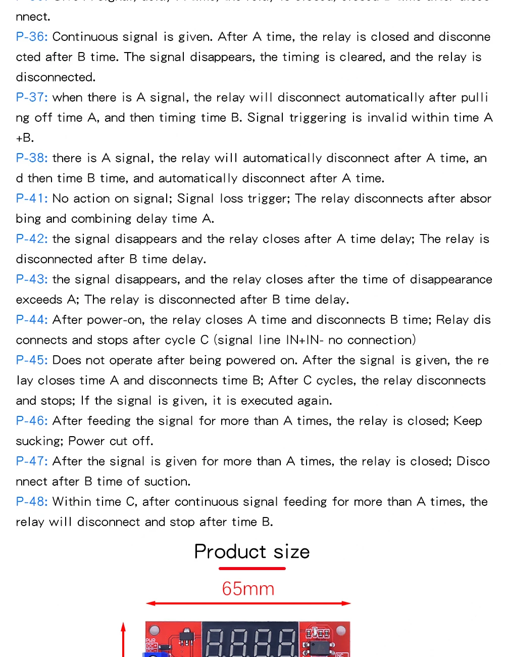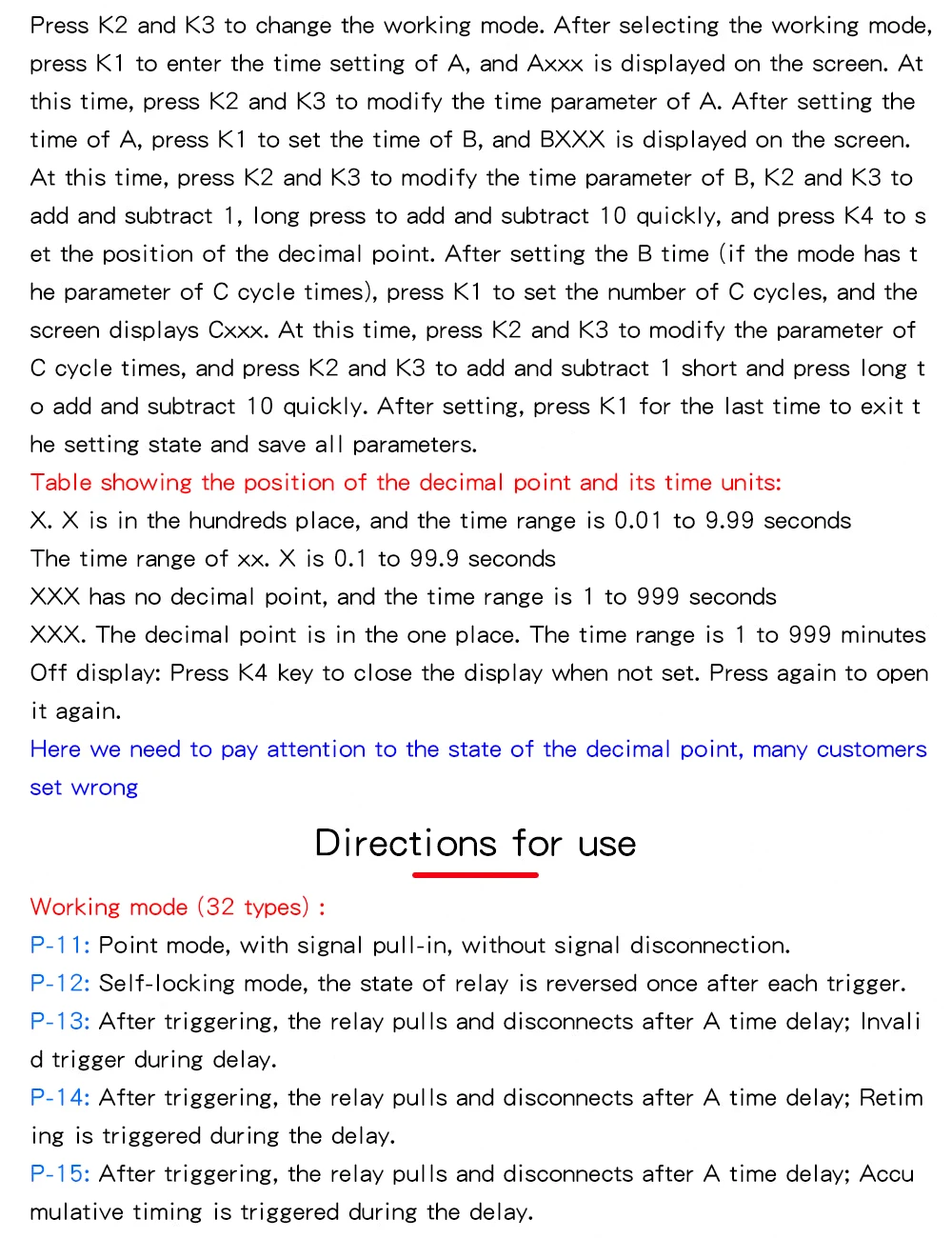 Gracias al fabricante... Un temporizador muy bueno para cualquier situación. Todos los modos funcionan como deberían. La descripción de los modos, lamentablemente, es muy superficial. Pero lo descubrí experimentalmente.