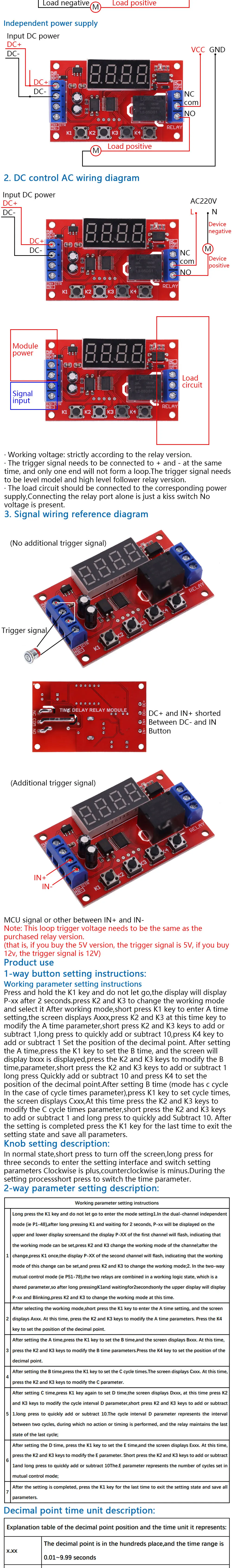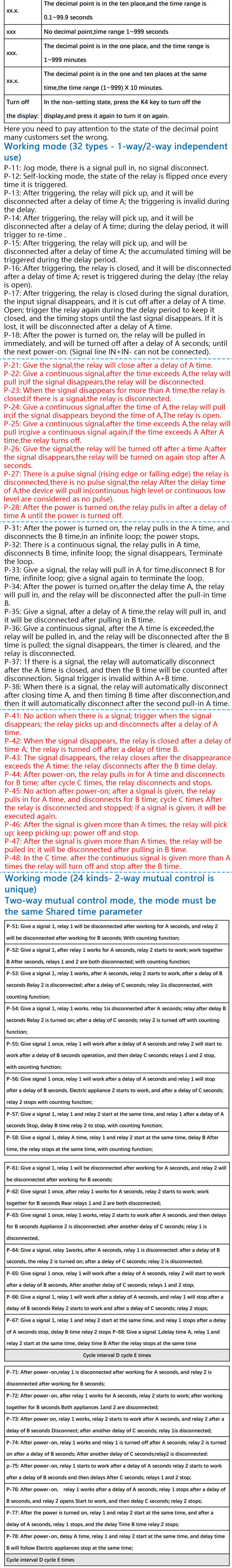 Lo estoy usando como temporizador para una soldadora por puntos. Lo modifiqué para reemplazar el relé con un triac optoaislado, para accionar el triac de potencia de conmutación principal. Este fue comprado como repuesto. Sería útil que el vendedor indicara un PDF descargable de las instrucciones de programación, que son bastante complicadas.