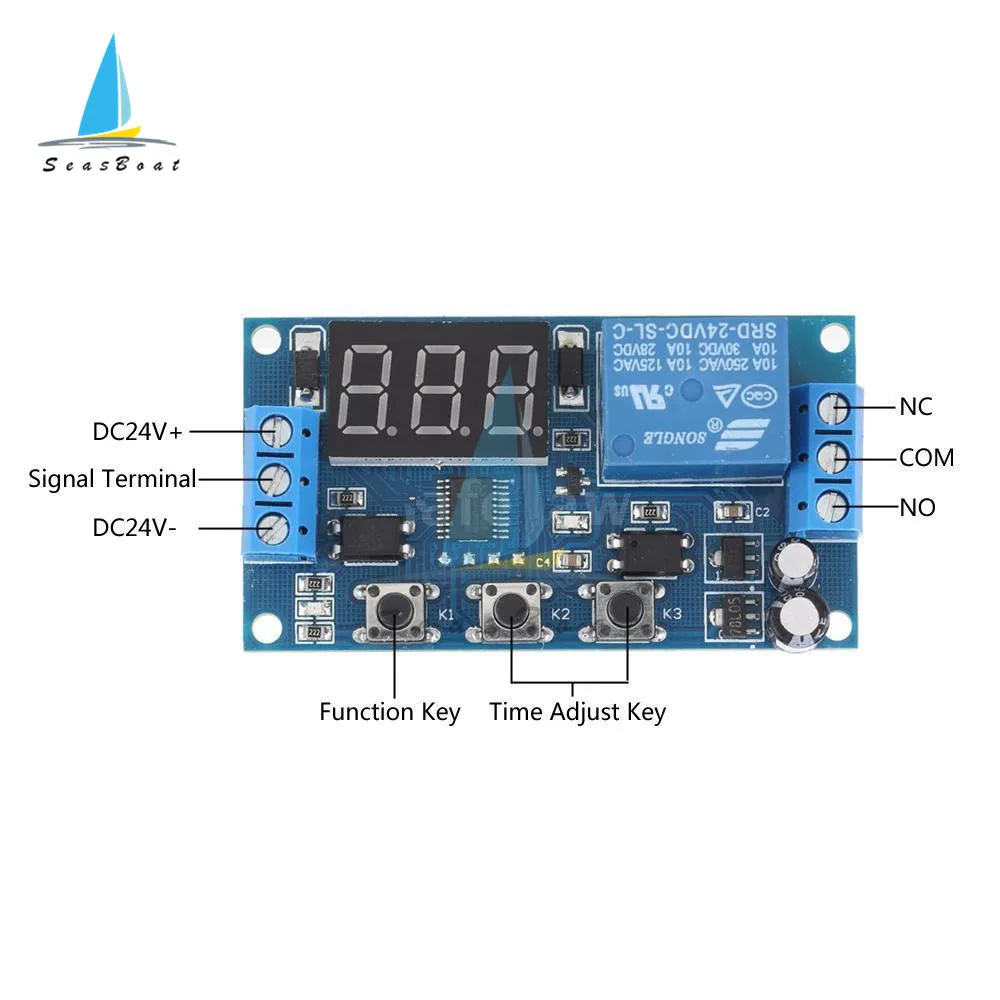 DC 12V 24V LED Módulo de relé de retardo de tiempo digital Control de sincronización Temporizador programable Interruptor Módulo de ciclo de disparo con estuche