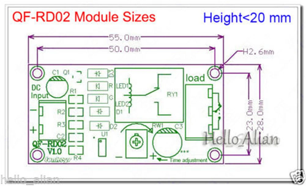 Característica: Este es un módulo de relé de retardo de conducción de 12 V. - Este es un módulo de encendido/apagado retardado nuevo y de alta calidad. el uso de un diseño de CPU de sincronización de alto rendimiento. - el LED indicador de encendido y la indicación de sincronización del disparador del interruptor LED; - La salida se puede conectar a CA 250V 10A o CC 30V 10A carga; - Existe el tiempo de regulación de la cronópotenometría, ajustable. de 0 a 60 segundos de forma predeterminada, o cambiando el tiempo de ajuste de capacitancia más largo Corriente de espera: 5 mA Acción: 45 mA Para aplicaciones de: Retraso del equipo del vehículo para evitar el encendido del automóvil, prevención de alta corriente repentina para quemar componentes y dispositivos. Parámetro: 1.Módulo basado en: chip NE555. 2.Módulo de retardo: módulo de conexión de retardo 3. Voltaje de entrada: DC12V (DC 10v ~ 14,5v está bien). 4.Voltaje de control: CA 0 ~ 250 V/máx.10A, CC 0~30V/máx.10A el voltaje de funcionamiento: 12 voltios CC; (de lo contrario 12V opcional) 5.Máx.carga: 2200W Características del chip principal (NE555): 1.Temporización desde microsegundos hasta largas horas 2. Diseño de circuito simple 3.Generación/tiempo de pulso de precisión, 4. Ciclo de trabajo ajustable 5.Innumerables aplicaciones y fuentes de información