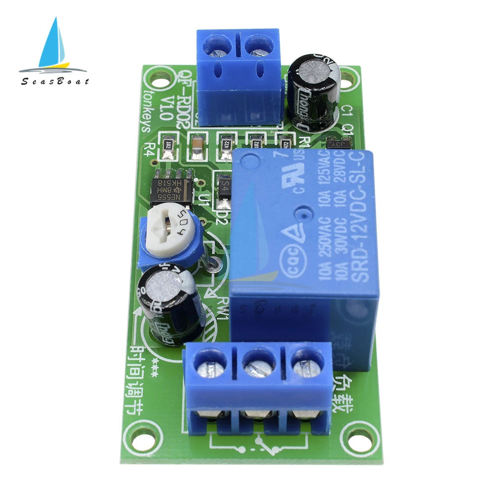 Módulo de relé de retardo de tiempo NE555 DC 12V, relé de retardo de sincronización de gatillo de conducción, interruptor de temporizador, generación de pulsos ajustable de 0 a 60 segundos
