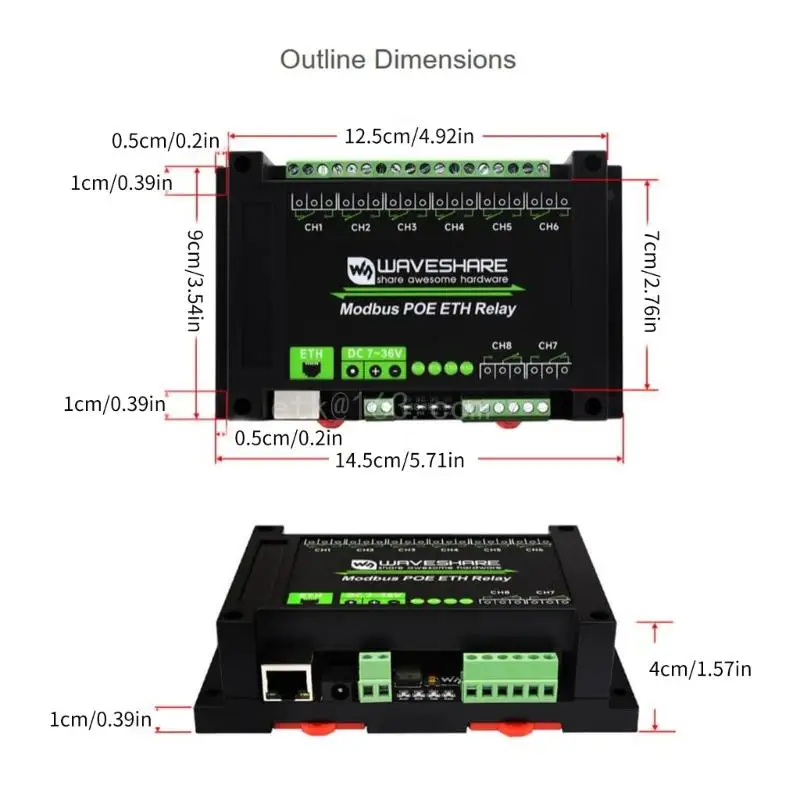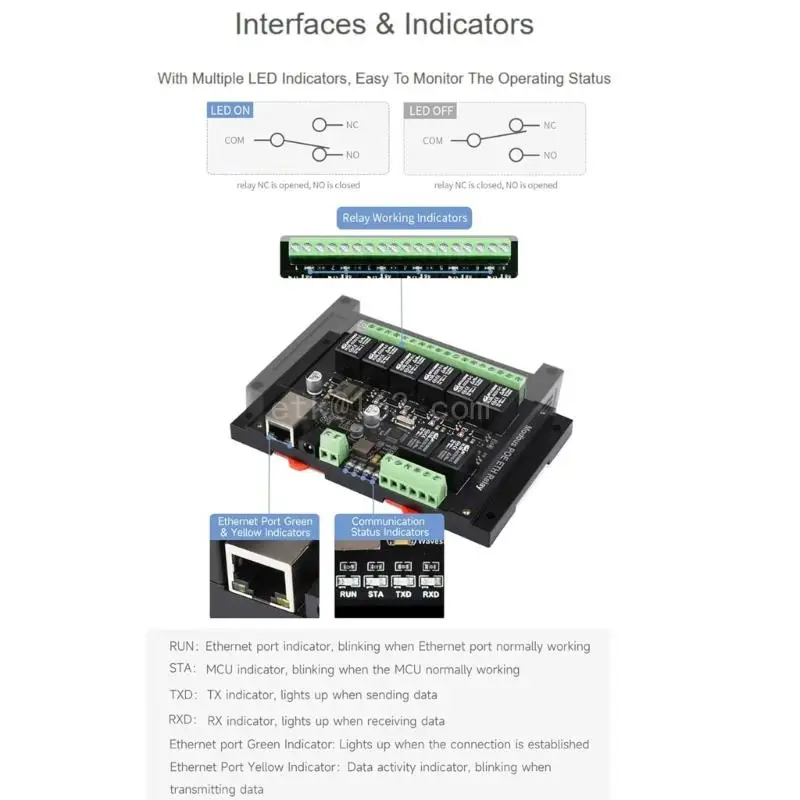Este producto es un puerto Ethernet controlado por un módulo de relés industrial de 8 canales, adopta protocolos Modbus RTU/Modbus TCP, admite fuente de alimentación PoE, también viene con una caja de montaje ABS. 4 LED e indicadores de red para indicar la MCU y el transceptor