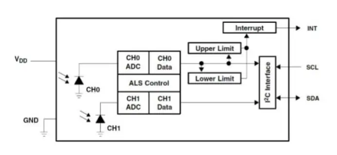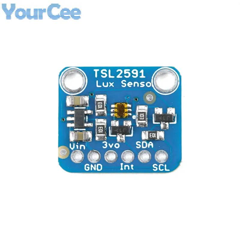 The TSL2591 light sensor is an advanced digital light sensor, suitable for use in various light conditions. Compared to low-cost cadmium sulfide cells, this sensor is more accurate, allowing precise lux calculations and configurable for different gain/timing ranges, with a 188 DULUX light detection range up to 88,000 lux at a flying distance. It contains both infrared and full-spectrum diodes, which can measure infrared, full-spectrum or human visible light respectively. The TSL2591 light sensor has a huge dynamic range of 600 million:1. Please note that compared to the previous TSL256 1, the 7-bit I2C address (0x29) of the sensor cannot be changed. The board has a voltage regulator and can work at a voltage of 3.3V-5.0V. The built-in ADC device can take advantage of this with any microcontroller, even if it does not have an analog input. Actively sense 0.4mA, less than 5μA in power-down mode. The device current consumption is extremely low, so it is very suitable for low-power data recording systems.Product Parameters:Interface type: IICVoltage range: 3.3V-5VDynamic range count: 1 600,000,000Lux range: 188 uLux sensitivity, up to 88,000 lumens input measurement.Temperature range: -30°C~80°CDimensions: 1 9mmx16mmx1mmPin Definition:VIN: Power +GND: groundSCL: I2C serial clock lineSDA: I2C serial data lineINT: interrupt pinFunction Diagram:
