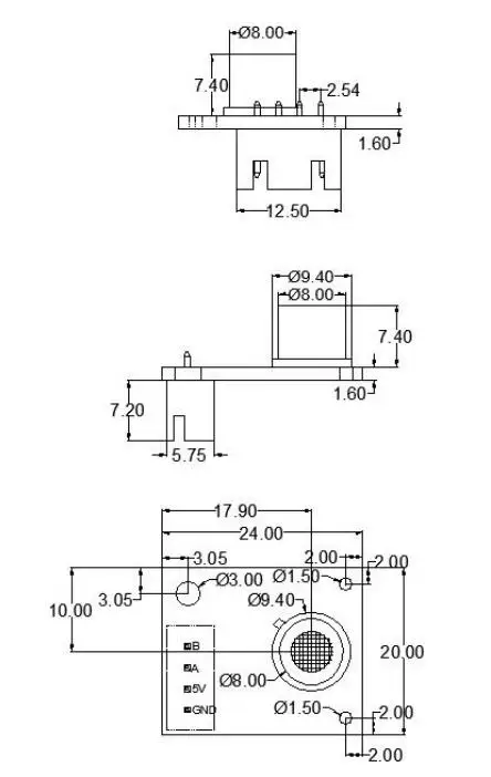 Módulo de humo ZP13El módulo de humo ZP13 utiliza sensores de gas semiconductores de película gruesa de chip avanzados.El módulo es extremadamente sensible a gases como humo, propano y similares.El módulo está envejeciendo, depurando, calibrado y calibrado con buena consistencia y alta sensibilidad.Aplicación:El aire se usa ampliamente en alarmas de humo domésticas, alarmas de humo industriales e instrumentos portátiles de detección de humo.Parámetro:Gas de detección: propano, humoInterfaz física: conector terminal XH2.54-4PDatos de salida: una salida de conmutación de señalVoltaje de funcionamiento: 5,0 ± 0,2 V CC (sin protección de conexión inversa de voltaje)Tipo de datos de salida: nivel TTL (protección incorporada de 200 Ωresistencia)Corriente de trabajo: ≤60mATiempo de calentamiento: ≤ 3 minutosTiempo de respuesta: ≤ 20 segundosTiempo de recuperación: ≤ 60 segundosTemperatura de trabajo: 0~50°CHumedad de trabajo: ≤95%RHTemperatura de almacenamiento: -20 ~ 60° CDimensiones: 24 × 20 × 15 mm
