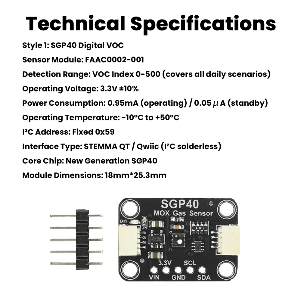 Style 1: SGP40 Digital VOC Sensor Module: FAAC0002-001