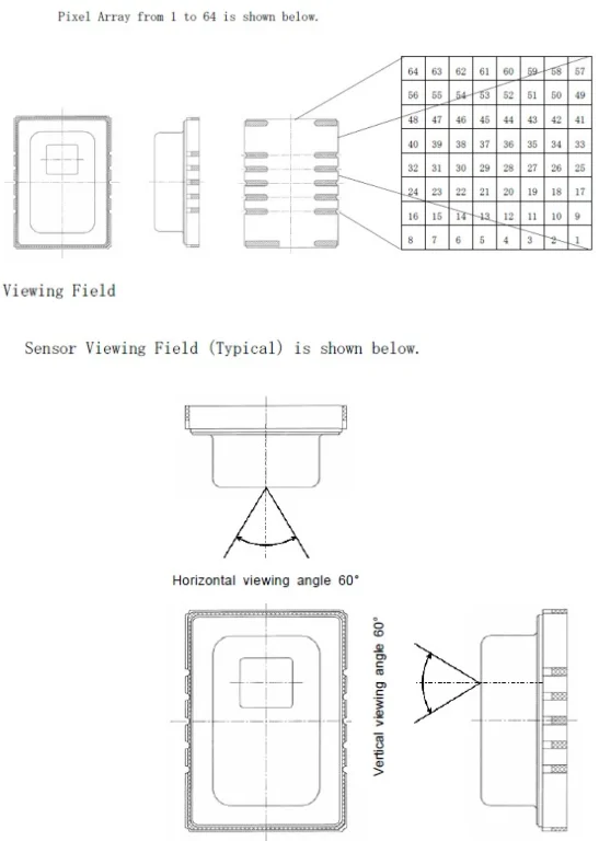 El sensor de matriz de puntos de medición de temperatura por infrarrojos del puerto serie GY-MCU8833 AMG8833 contiene una microcomputadora de un solo chip, el puerto serie genera directamente 64 datos de temperatura, USB a ttl se conecta directamente a la computadora para ver los datos.Proporcione software de computadora superior, muestre directamente gráficos de imágenes de temperatura y arduino, código de lectura i2c de puerto serie de un solo chip stm32, 51.I2C puede cambiar la dirección del dispositivo y se conectan varios sensores al bus.Proporcione arduino, stm32, 51 puertos serie de microcontrolador i2c para leer el código.I2C puede cambiar la dirección del dispositivo y se conectan varios sensores al bus.La cantidad de celosías del módulo es pequeña, la resolución es baja y el efecto de imagen solo puede ver el contorno.