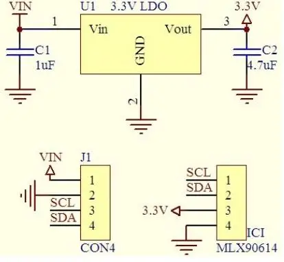 Precauciones:Es necesario prestar atención a la precisión mencionada anteriormente en el diseño de aplicaciones que se puede garantizar y lograr cuando el sensor está bajo equilibrio térmico y condiciones isotérmicas.(No hay diferencia de temperatura en el paquete del sensor) La diferencia de temperatura dentro del paquete afectará la precisión de la medición del termómetro.Los siguientes factores causarán la diferencia de temperatura: la trmiónica en la parte posterior del sensor, el calentador/enfriador en la parte posterior o al lado del sensor, o cuando un objeto frío/caliente se acercará al sensor, no solo se calentará el elemento sensor., pero también el paquete del termómetro.Es necesario evitar el uso de operaciones que provocan gradientes térmicos o aislar el sensor del medio ambiente tanto como sea posible.Modelo de chip: MLX90614-DCI