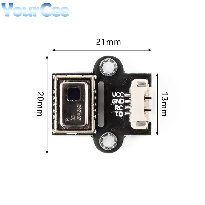 GY-906Parámetros del producto:Dimensiones: 16,8 mm (largo) * 11,46 mm (ancho) * 6,2 mm (alto), el diámetro de la sonda es de 8,2 mmTipo de interfaz digital: IIC (modo esclavo) o PWMRango de medición de temperatura: -70℃~382.2℃Error de medición de temperatura: ±0,5℃ (a temperatura ambiente) resolución 0,02℃Voltaje de funcionamiento: 3,3 V ~ 5 VTemperatura ambiente operativo -40~125℃Con orificios para tornillos de fijación M3 para una fácil instalación y fijación.Instrucciones de uso:Después del reinicio del encendido, MLX90614 es el modo de salida predeterminado de fábrica SMBus y PWM no está habilitado.El pin SCL debe mantenerse alto al encender para utilizar PWM.Si PWM ha habilitado, debe cambiar a SMBus y reconfigurar el pin PWM/SDA antes de iniciar la comunicación SMBus.Es necesario mantener el pin SCL por más del tiempo de solicitud (tREQ) 1, 44 ms para mantenerlo bajo.En este caso, se ignoran los datos de la línea SDA.Una vez que el PWM no está habilitado, solo se puede habilitar cortando la fuente de alimentación o salendo del modo de suspensión.Si PWM no está habilitado a través de EEPROM, el pin PWM/SDA se utilizará directamente para la comunicación SMBus después de POR.En este caso, no es necesario enviar el estado de la solicitud.La forma de ingresar al modo SMBus desde PWM o relé térmico es la mismaConexión MLX90614-SMBus