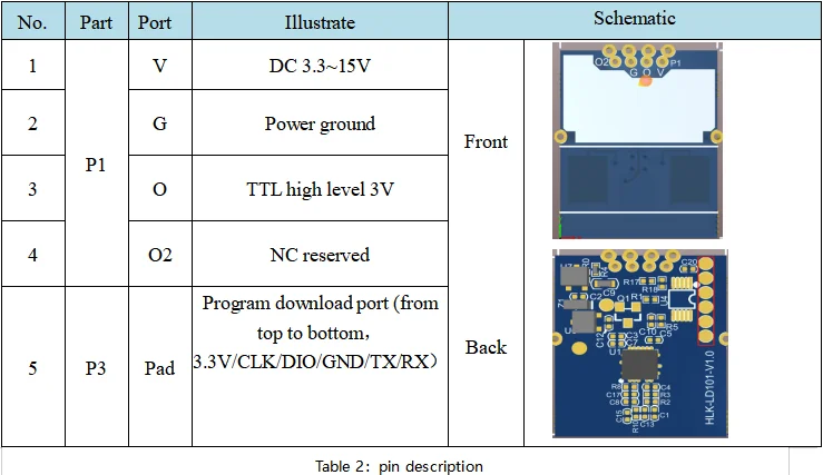 HLK-LD101 es un módulo de radar de banda X que funciona a 10,525 GHz.Basado en el efecto Doppler, este diseño utiliza antenas de transmisión y recepción direccionales de frecuencia fija, que se combinan por primera vez con tecnología de integración de chips y antenas de microondas en el mercado.