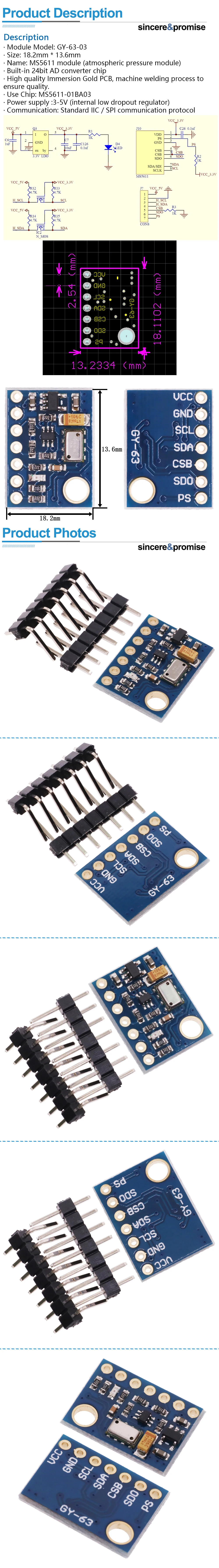 Módulo de Sensor de presión atmosférica MS5611-01BA03 GY63 MS5611, placa electrónica DIY, IIC SPI, 24 bits, AD PCB para Arduino