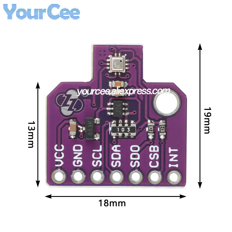 Dirección I2C: 0x77 (dirección predeterminada)/0x76 (opcional: pin SDO conectado a GND)