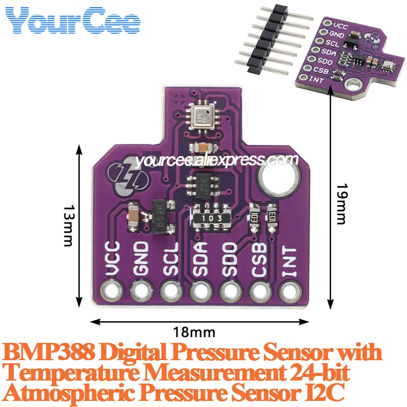 Comprar Módulo sensor de presión digital BMP388, medición de temperatura, sensor de presión atmosférica de alta precisión de 24 bits I2C, 10 Uds./1 ud.