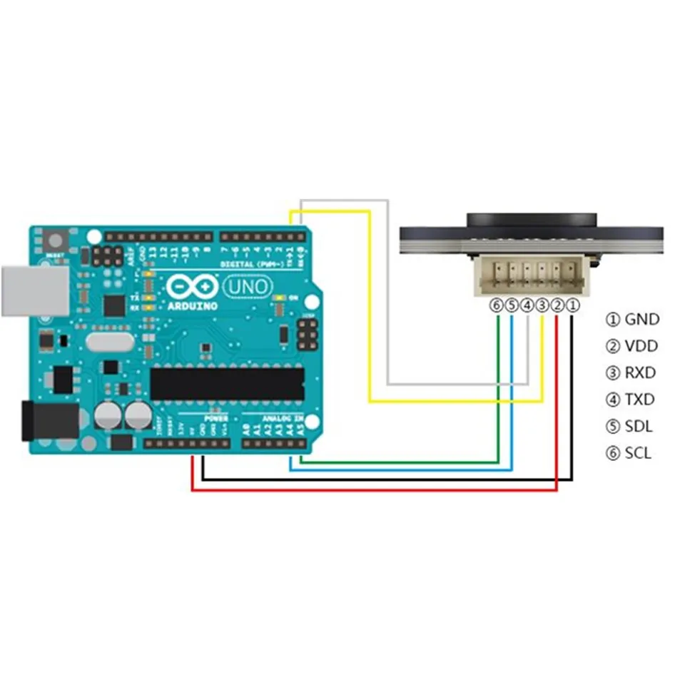 Sensor de distancia de conexión de placa rduino, UART lea datos de distancia a través de RXD-TXD, I2C lea datos de distancia a través de A4-A5, UART lea para eliminar el programa de carga de código Ardunio A4-A5, para eliminar el módulo después de cargarlo correctamente y luego se conecta a Arduino Código UART, uno para cada I2C