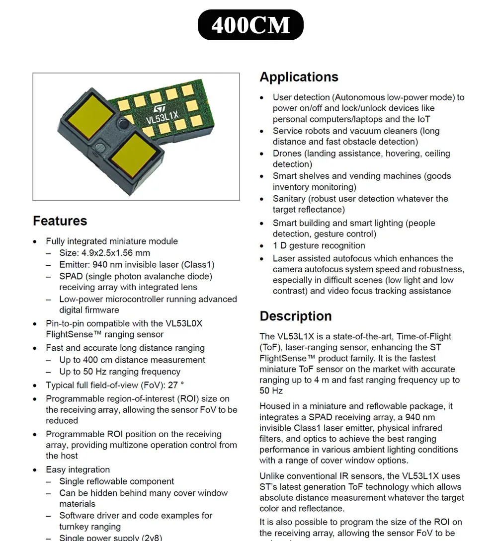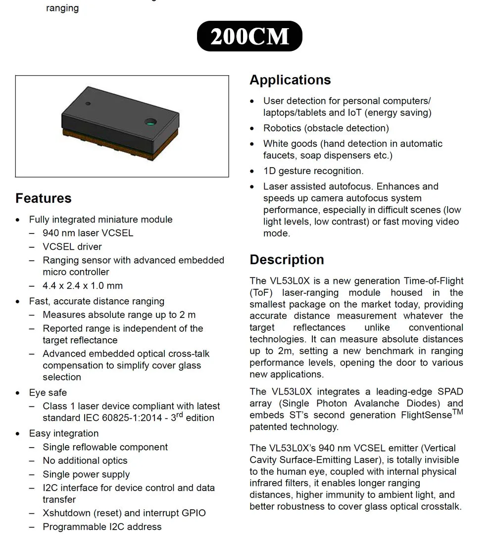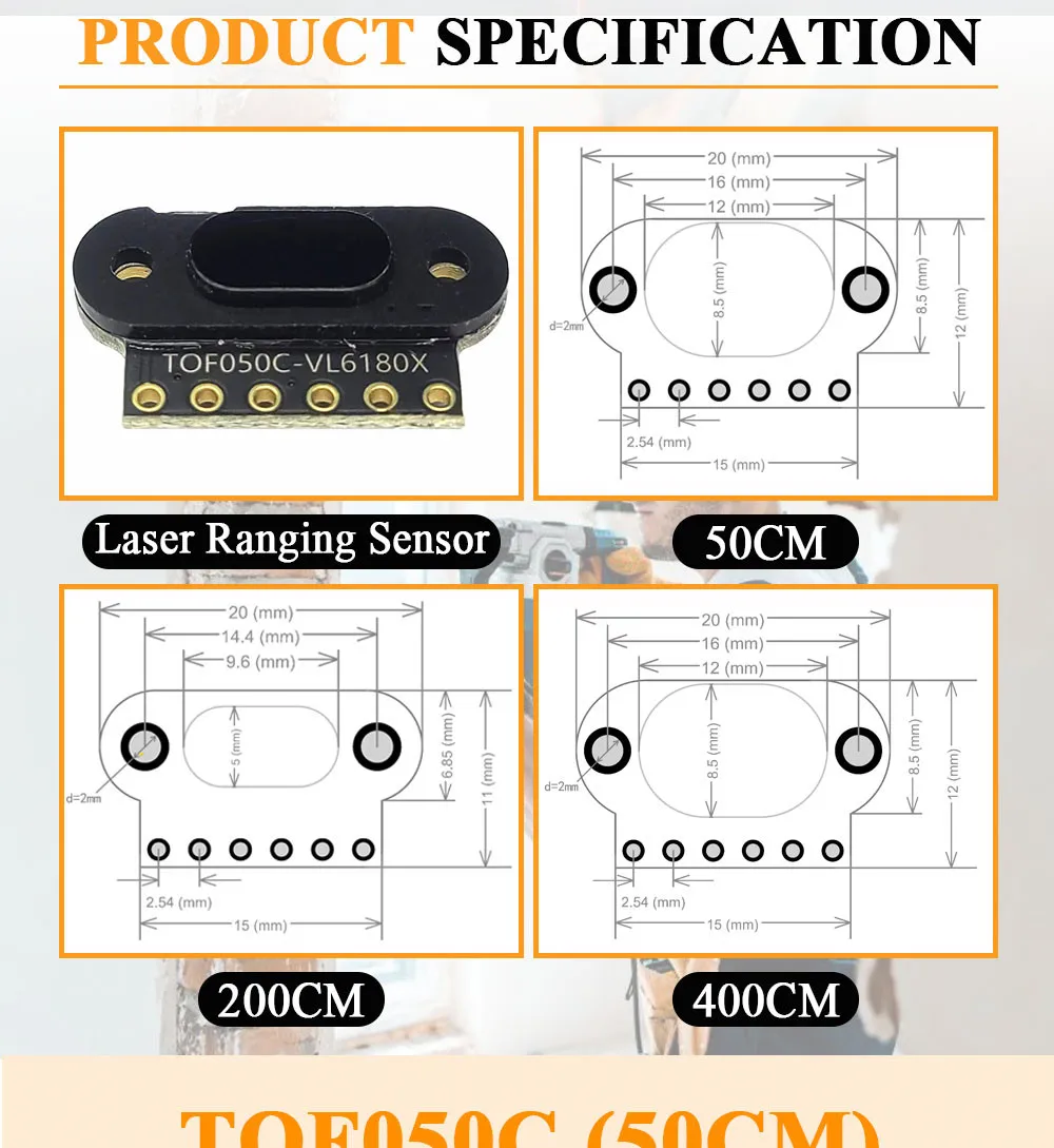 Módulo de sensor de alcance láser para Arduino STM32 I2C Salida TOF050C TOF0200C TOF0400C Medición de distancia de vuelo 50CM 200CM 400CM