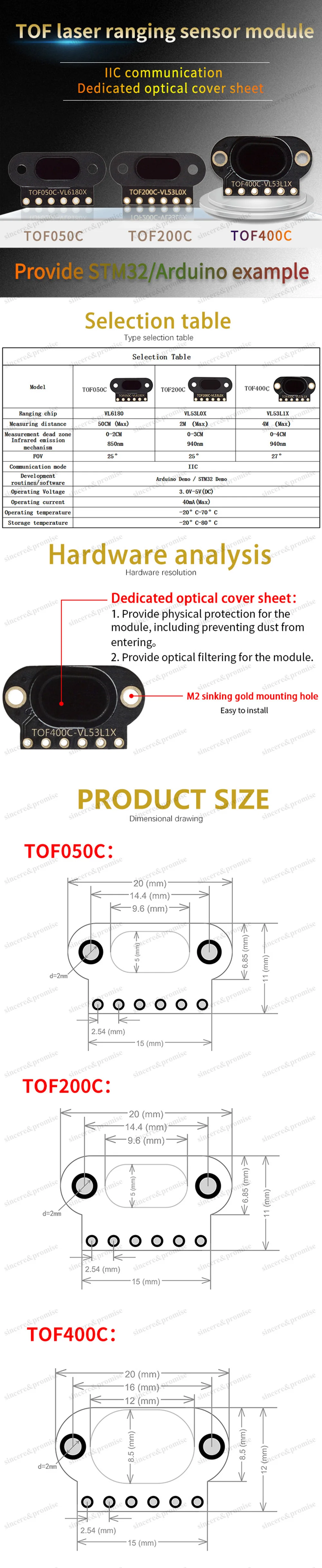 Módulo de Sensor de rango láser VL6180/VL53L0X/VL53L1X tiempo de vuelo (ToF), TOF050C, TOF200C, TOF400C, 50CM/2M/4M, IIC para Arduino STM32