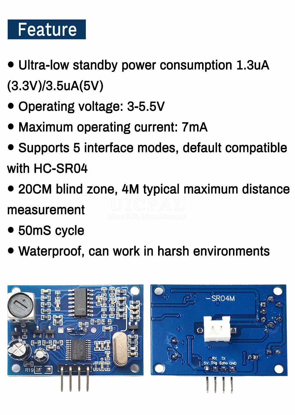Módulo de sensor de rango ultrasónico para Arduino, resistente al agua, 20-450CM, con cable de 2,5 M, sensor de medición de distancia