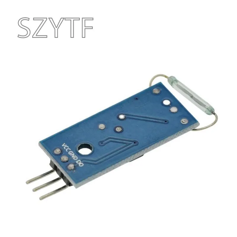 1. El tubo de lengüeta debe utilizarse en cooperación con el imán. Cuando se induce a tener una cierta fuerza magnética, estará en el estado de conducción, el módulo emite un nivel bajo, y cuando no hay fuerza magnética, estará en estado de desconexión y emitirá un nivel alto.
