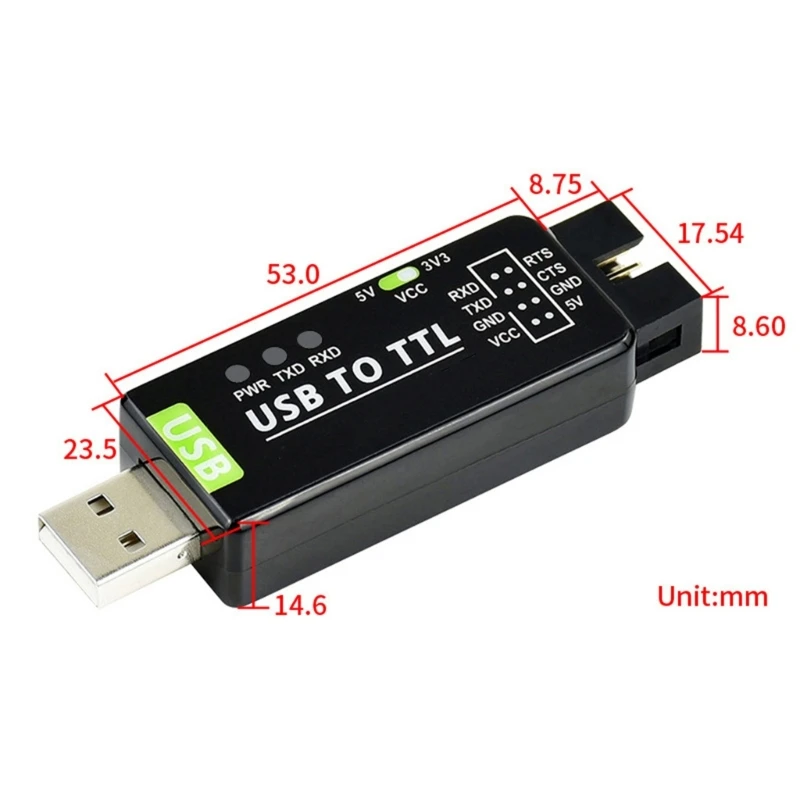 Adecuado para aplicaciones amplias que requieren comunicación USB a serie TTL, como el desarrollo de depuración de hardware.