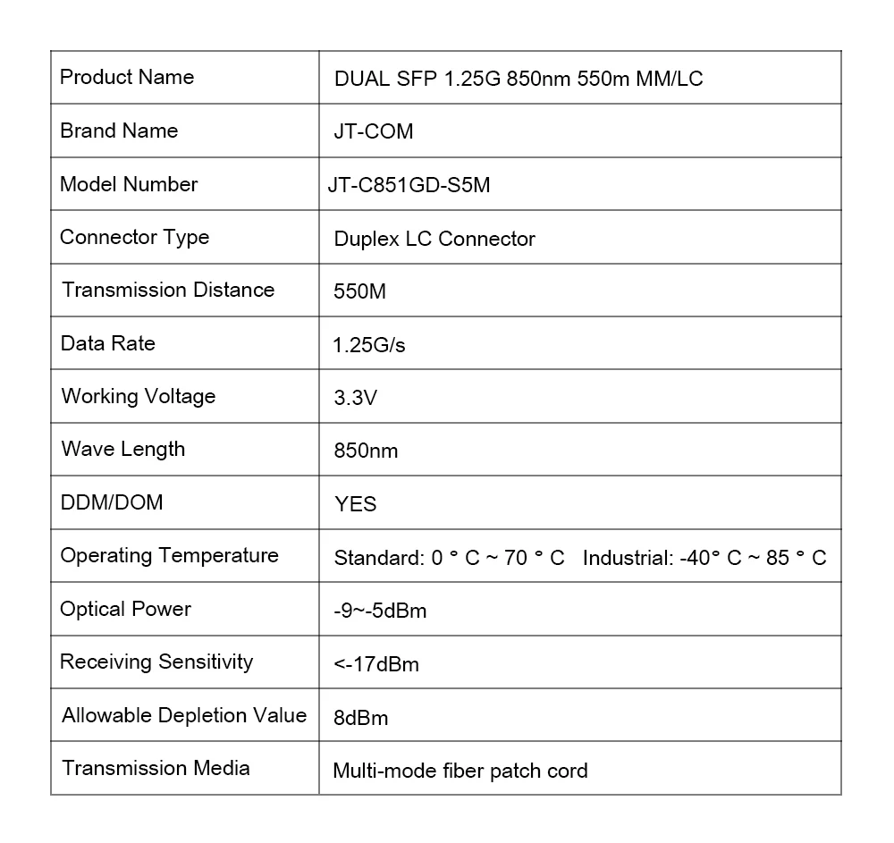 Comprar Módulo SFP óptico de 1Gb Gigabit 850nm 550m DDM Multimodo Duplex LC Mini Gbic 1.25G Módulo SFP de fibra Módulo Tranceiver Interruptor SFP compatible Mikrotik Cisco