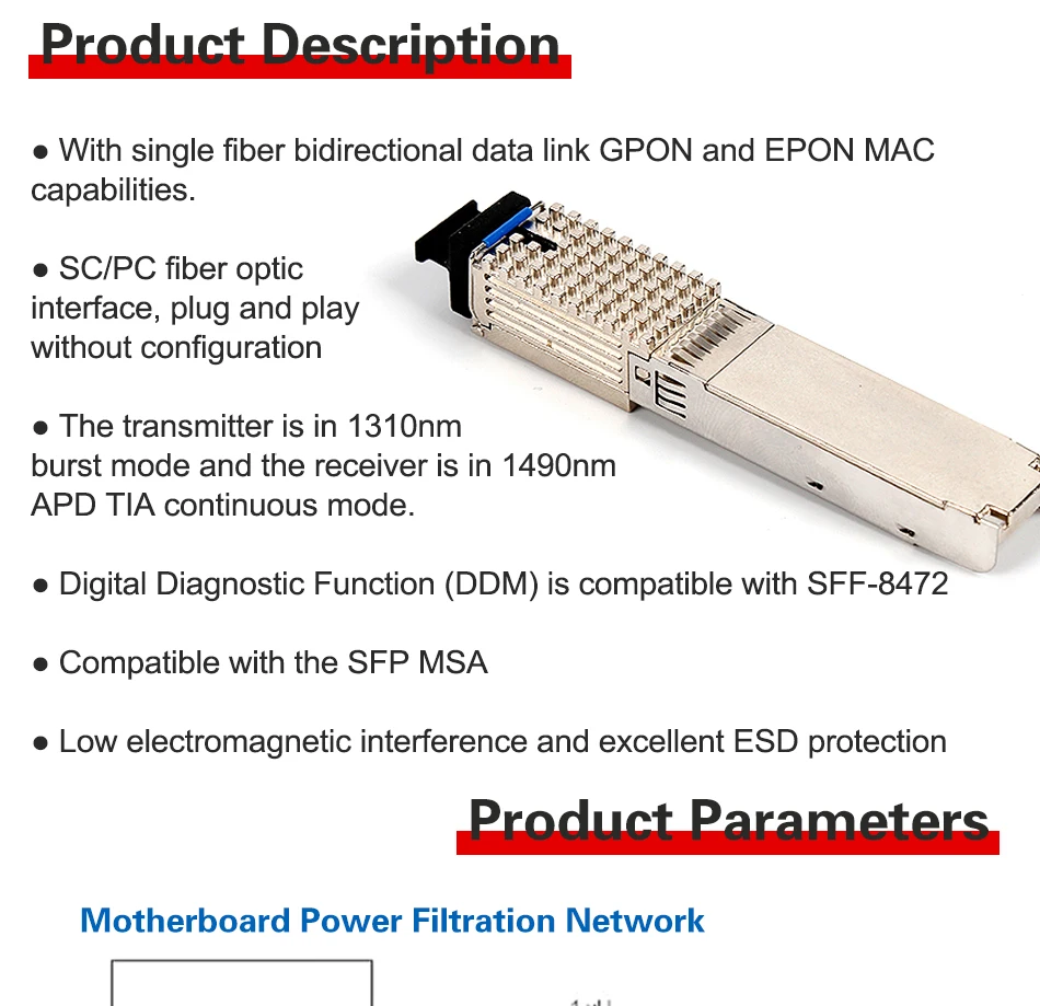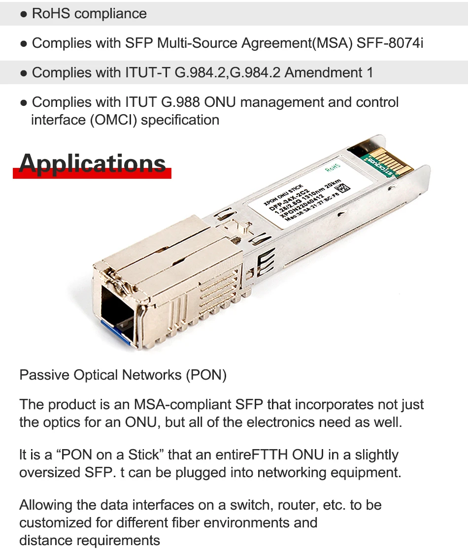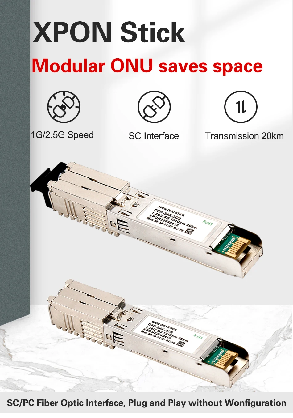 Comprar Módulo SFP Stick XPON de 1,25G/2,5G con MAC PPPoE, conector SC de 1310nm/1490nm, 20KM, PON, OLT ONU, MAC XPON = EPON/GPON