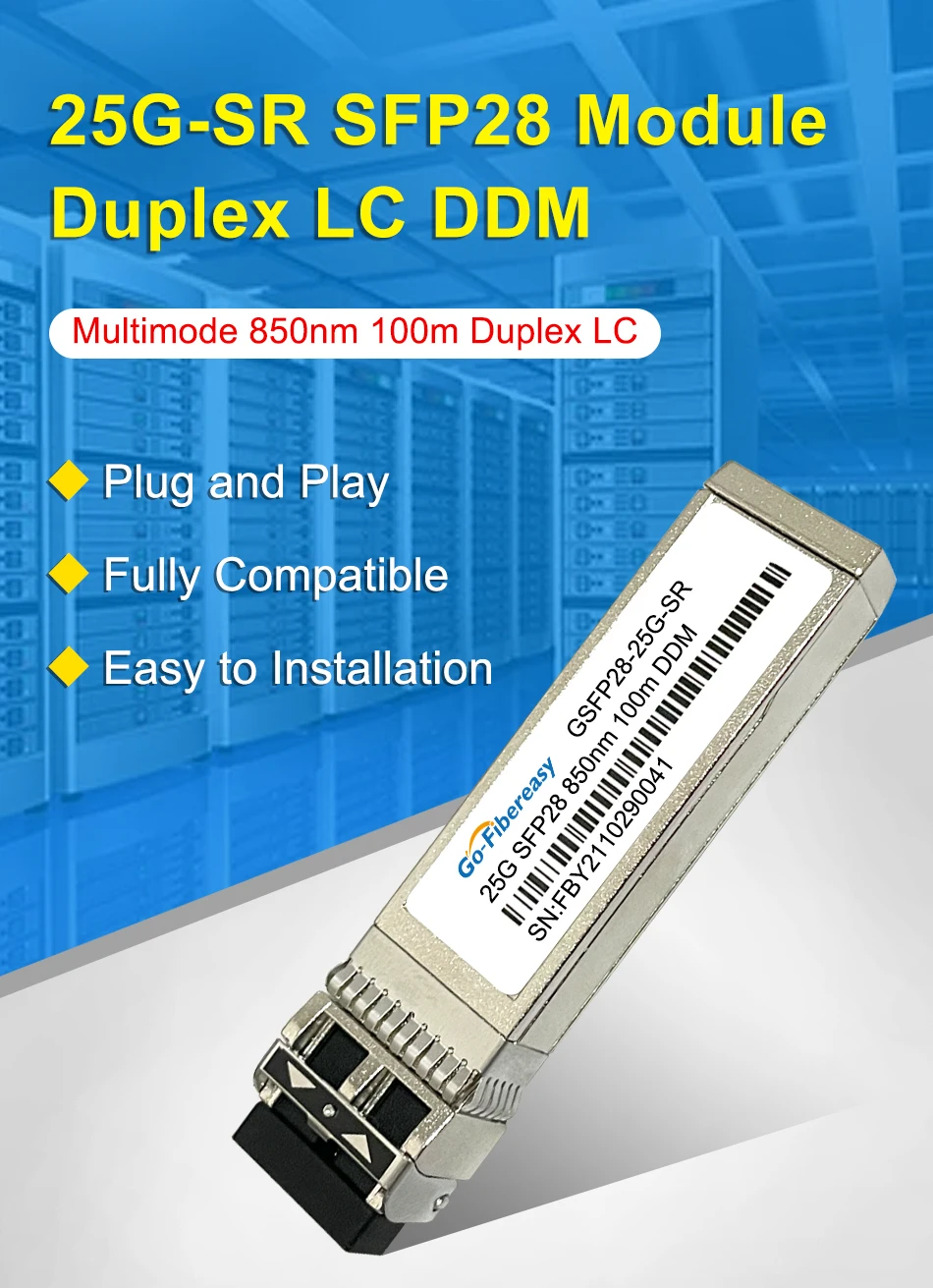 Comprar Módulo SFP28 Dual LC 25GBASE-SR 850nm 100m DDM MMF SFP28, transceptor óptico para interruptor de fibra de Cisco/Mikrotik/Huawei/Juniper, 25G