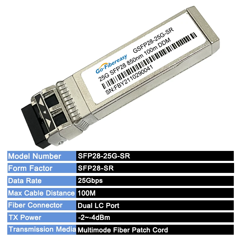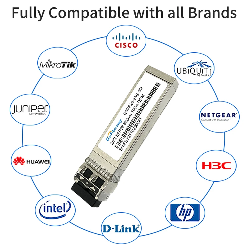 Comprar Módulo SFP28 Dual LC 25GBASE-SR 850nm 100m DDM MMF SFP28, transceptor óptico para interruptor de fibra de Cisco/Mikrotik/Huawei/Juniper, 25G