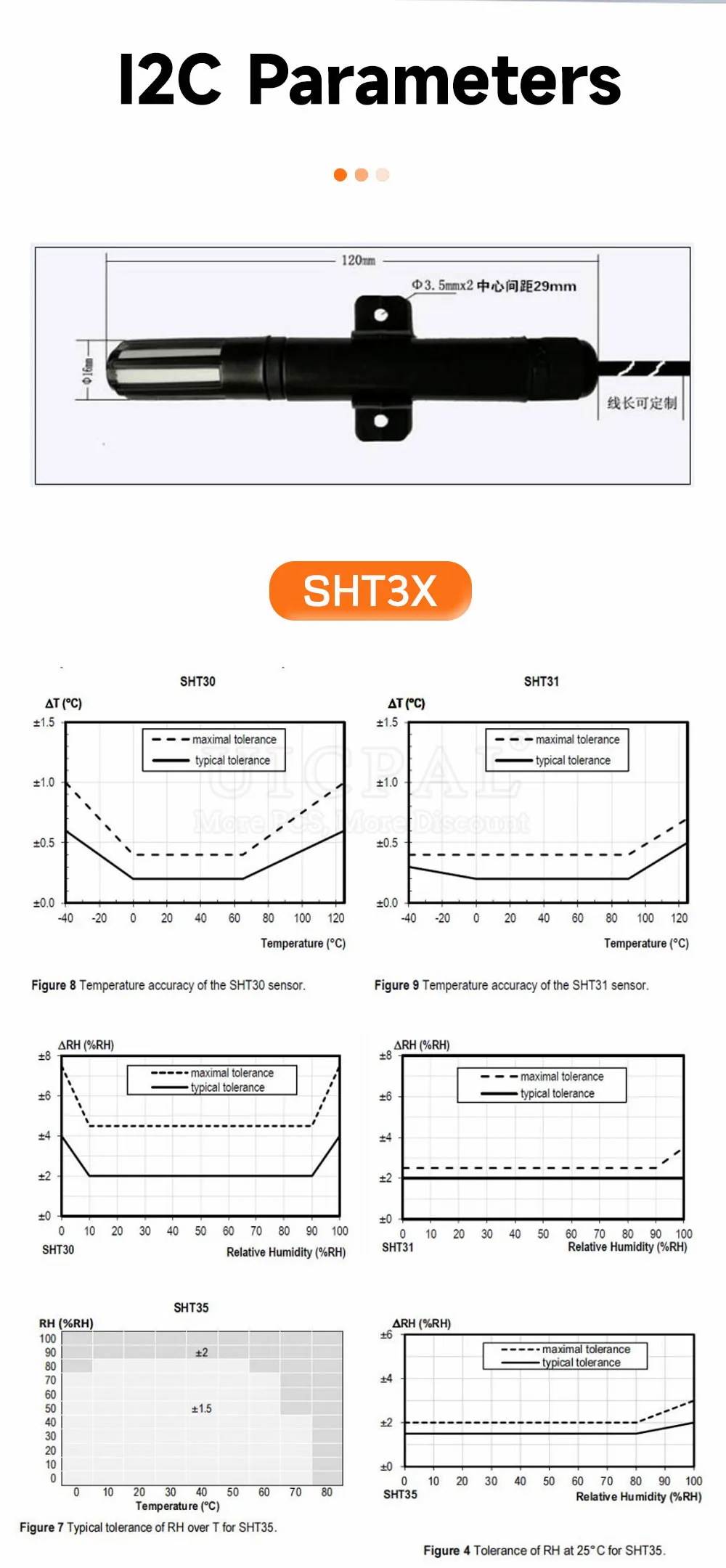 Sonda de Sensor de Temperatura Digital SHT20 SHT21 SHT30 SHT31 Escudo de Cable de Sensor de Humedad OEM 1M 2M Interfaz I2C Impermeable