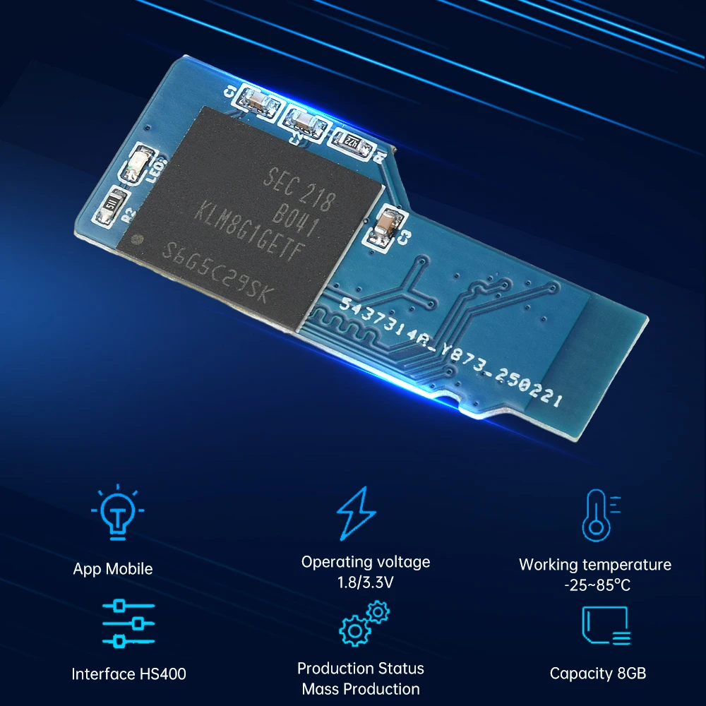 1.eMMC 5.1 de alto rendimiento: velocidad de lectura de 40 MB/s, velocidad de escritura de 20-40 MB/s, adecuada para placas de desarrollo y almacenamiento.