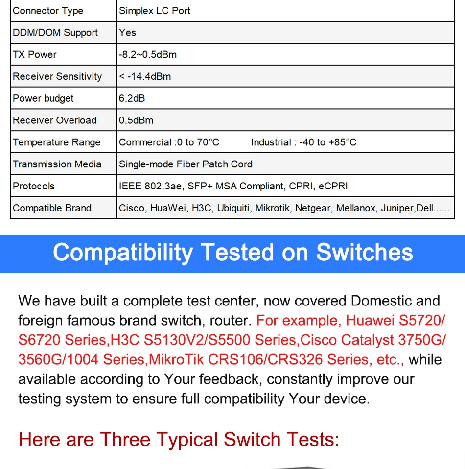 Compatible conMikrotik/Cisco/Ubiquiti/HuaWei/TP-Link/Juniper/D-Link/Intel/Netgear/Dell/Mellanox....