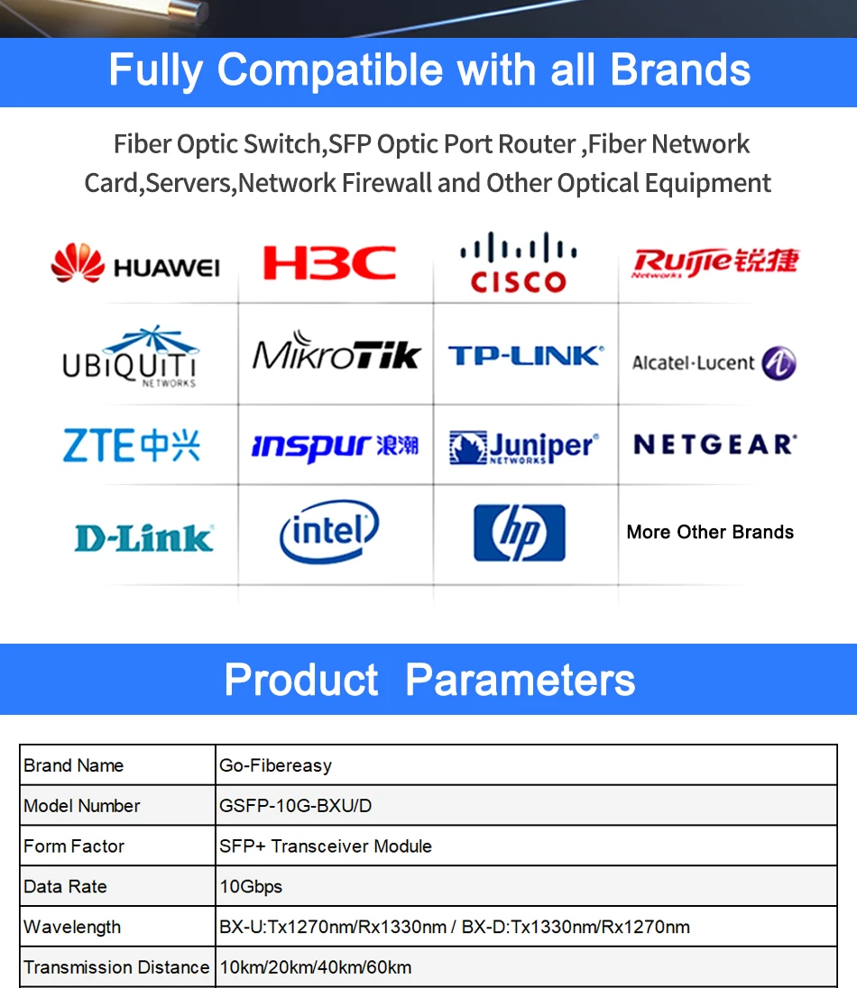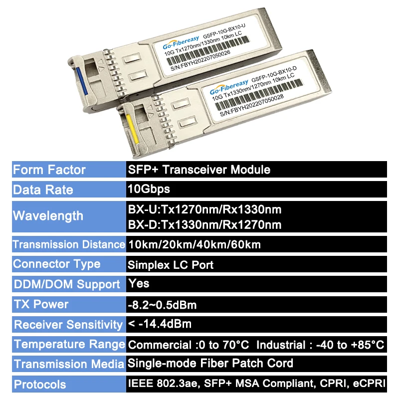 Comprar Módulo transceptor BiDi SFP de 10 Gb, 10 km, 20 km/40 km/60 km, 10 Gb-BX T1270/R1330nm LC WDM módulo óptico para interruptor Mikrotik/Huawei